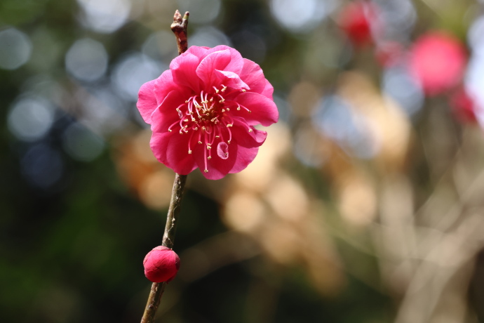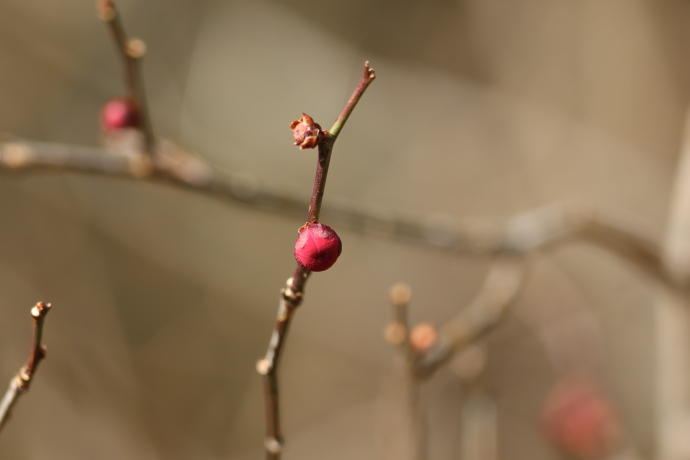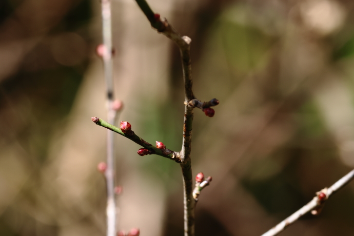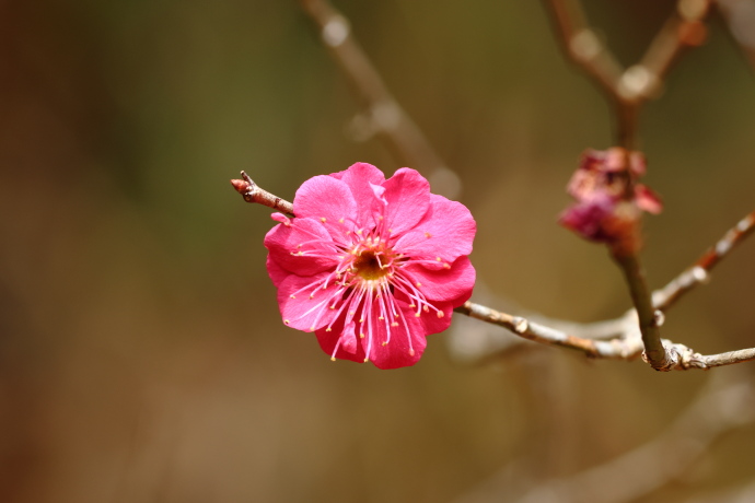 まだ咲いていました。しかし、こちらの花をよく見ると雌しべがありません。結実を避けて体力を温存しながらも、花をたくさん付けて昆虫にアピールする、ウメの生存戦略です。