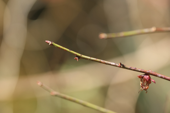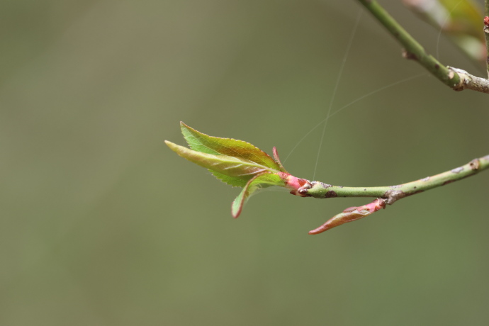 1月中旬に花芽が膨らみ、葉芽は4月に入ってから展開しました。
