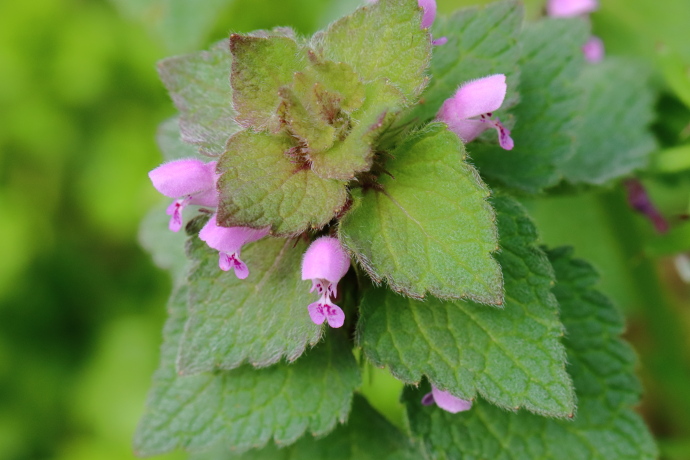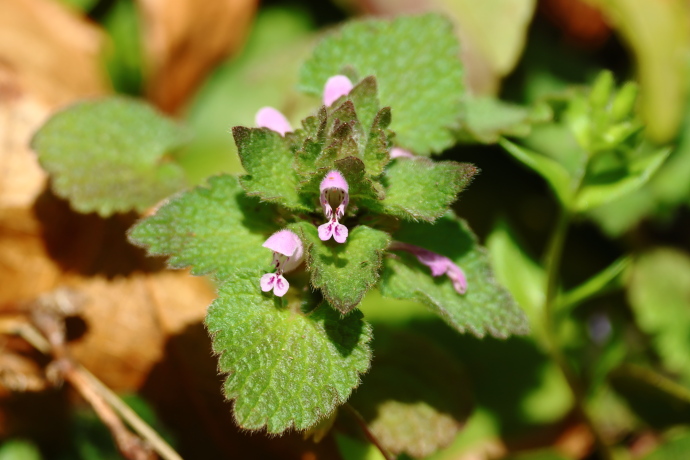 ヨーロッパ原産の外来種で、日本原産のオドリコソウと同属。オドリコソウは30cmを超えるほど高くなりますが、本種は大きくても25cm程度で、名に「ヒメ」が付きました。