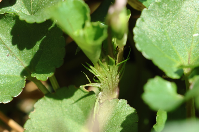 本種は有茎種で、地上茎があります。花の咲き始めの頃には短く、ほとんど目立ちませんが、咲き終わった後に大きく立ち上がります。これがタチツボの「立ち」の由来です。