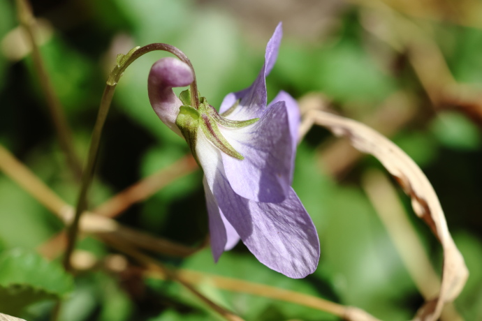 葉柄の基部には托葉が付きます。葉柄の根元に生じる葉状片で、櫛の歯のように深く切れ込みます。オオタチツボスミレなど近縁種では形状が異なり、識別の役立ちます。