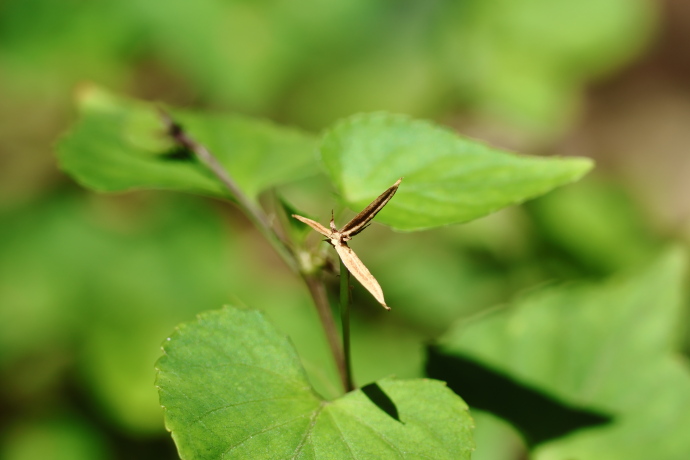 果実を確認しました。時期から見て、閉鎖花由来の果実と考えられます。閉鎖花は花を開かずに自家受粉し、種子を形成します。確実かつ効率的な繁殖方法を併用しています。