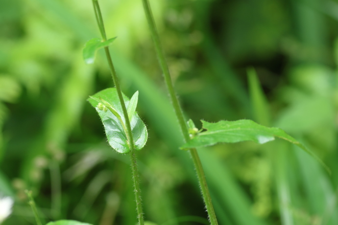 5月も後半になり、ヒメジョオンがずいぶんと増えてきました。ハルジオンと並んで咲いており、見分けに迷うこともあります。葉が茎を巻いているのがハルジオンです