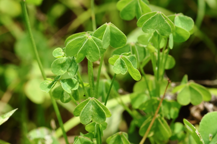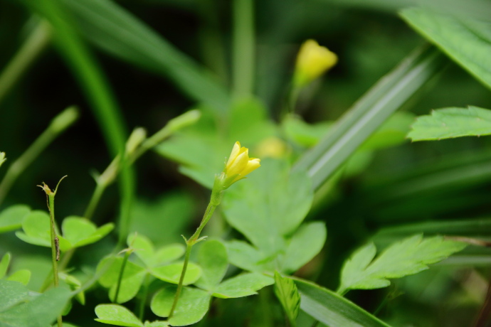 シロツメクサやアカツメグサと同様に、どこでも見られる馴染み深い花です。名前は、夜になると葉が閉じて、半分食べられたように見えることに由来しています。