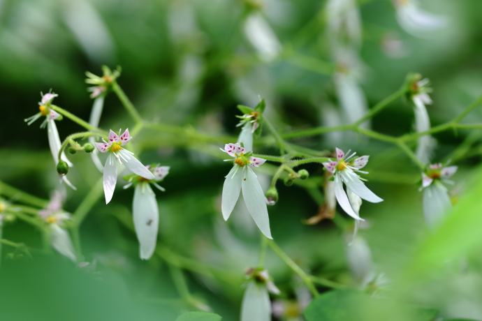花茎の先に円錐花序をつけ、たくさんの花が横を向いて咲いています。まるで妖精がメリーゴーランドに乗って遊んでいるかのようにも見え、神秘的な光景です。