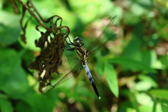 まさしく水色メガネです。童謡のモデルです。オスの複眼は成熟すると深みのある水色になります。オオシオカラトンボと似ていますが、複眼は黒く、識別できます。