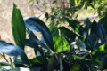 果実が膨らんできました。倒卵状の球形をした蒴果で、3室に分かれ、上向きに並びます。初めは緑色ですが、熟すと褐色を帯び、上部が3裂して黒い種子を放出します。