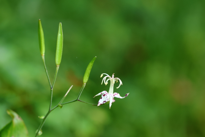 果実は披針形の蒴果です。3稜があり、熟すと裂開して種子を飛ばします。花の斑紋がホトトギスの胸の模様に似ており、山地に生育することからこの名が付けられました。
