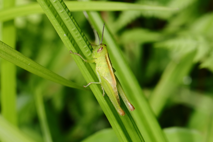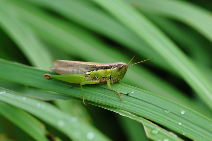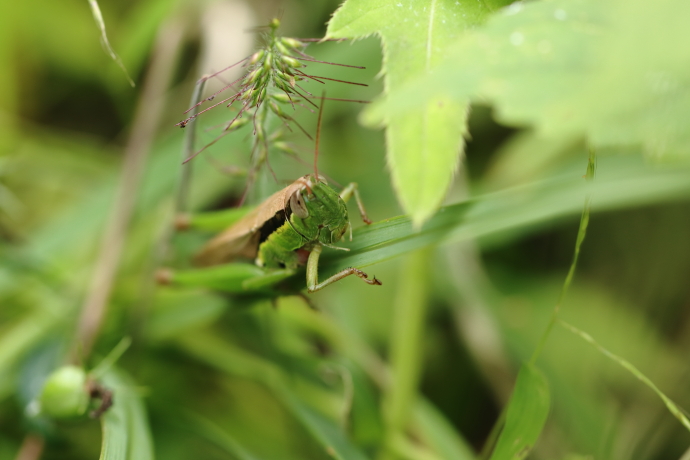 成虫になると特にイネの葉を好んで食べますが、食性はイネ科植物を中心に幅広いようです。多くは田に生息し、佃煮など人のタンパク源として活用されてきました。