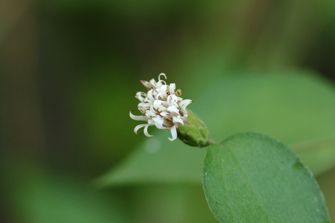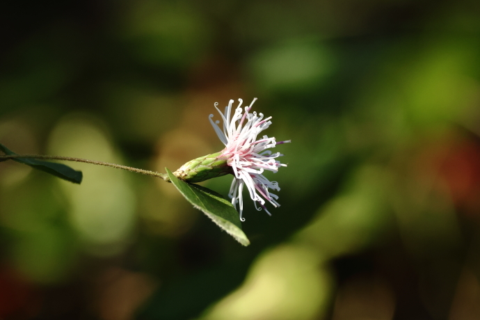 秋も随分と深くなってきました。この季節になっても白い頭状花を咲かせます。総苞は筒状で、約7列の総苞片が鱗状に重なっています。痩果が熟すと総苞片が開きます。