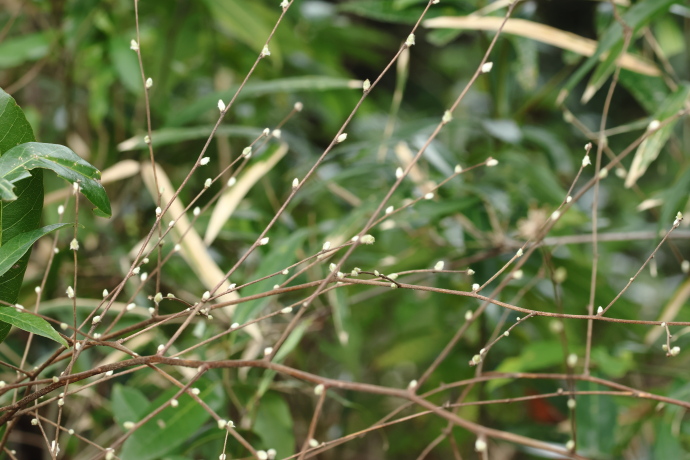 冬芽が芽吹いてきました。草本のように見えますが、木本で、分岐して細く固い茎を伸ばします。かつて高野山でこの茎を束ね、「箒」として使われたことが名の由来です。