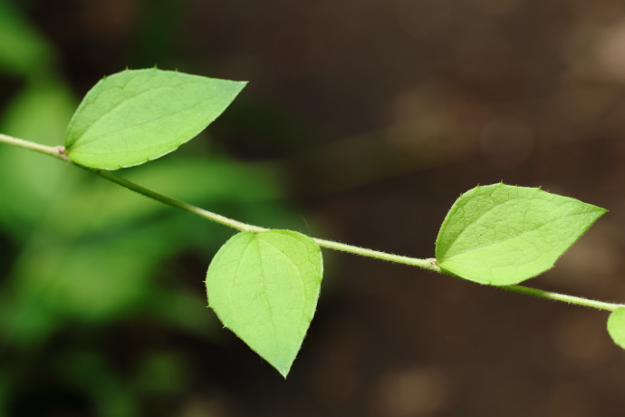 葉は1年枝と2年枝で様子が異なります。1年枝には幅広い卵形の葉が互生し、2年枝には束生して細長い葉が付きます。三行脈が目立ち、突起状の鋸歯がまばらに付きます。