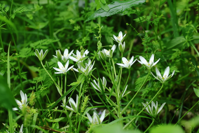 ヨーロッパから南西アジア原産の外来種です。明治期に観賞用として欧州などから導入され、野生化しました。白い花の中に小花が咲いているように見え、可憐な姿を見せます。