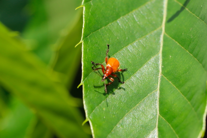 オトシブミの仲間ですが、揺籃は作らず、主にクリやコナラなどの葉に穴を開けて産卵孔を作ります。オトシブミなどの揺籃を利用する可能性が指摘されています。