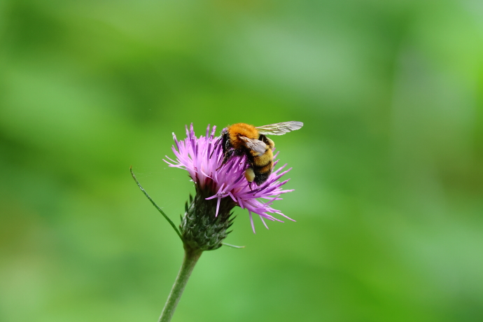 マルハナバチの仲間は北方系のハチです。毛が長く寒さに強いばかりか、花粉を効率的に集めることができます。花粉の重要な媒介昆虫ですが、近年個体数が激減しています。