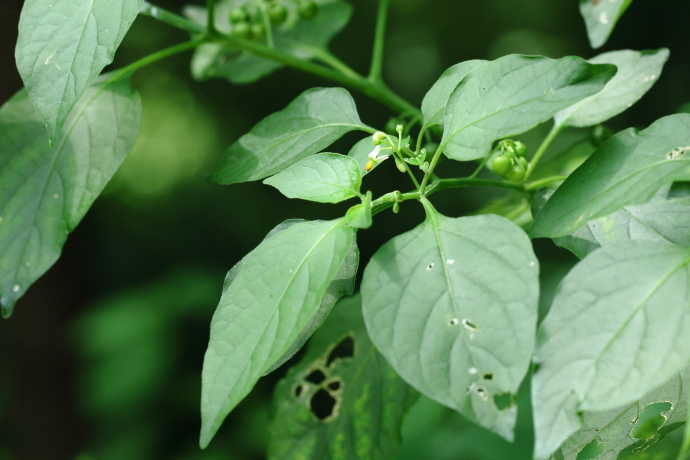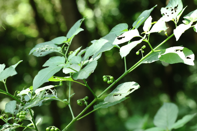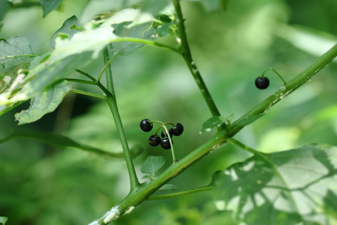 果実が黒く熟しています。全体にホオズキに似ていますが、食べられず役に立たないことから、「イヌ」の名が付けられました。「バカナス」という別名もあります。