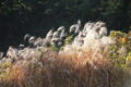秋が進み、草原全体が黄色みを帯びてきました。その中で本種の白い苞葉鞘が目を引きます。左には黒色に変わりかけた苞葉鞘、背後には黄色い苞葉鞘が並んでいます。