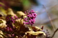 多数の花が咲く一方、傍らには花冠の落ちた花もあり、赤紫色の萼が目立ちはじめました。萼は鐘形で5裂し、三角状の裂片が星形に広がって、花のように見えます。