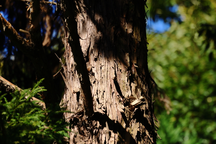樹皮は赤褐色で、縦方向に薄く長く剥がれる特徴があります。材はヒノキほど芳香や光沢はありませんが、腐りにくく、昔から建築や船の材料として使われてきました。