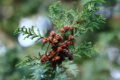 枝は横に広がり、枝先がやや垂れる傾向があります。枝の間隔は比較的広く、隙間が空いてすっきりとした印象です。よく似たヒノキは密に詰まり、印象が異なります。