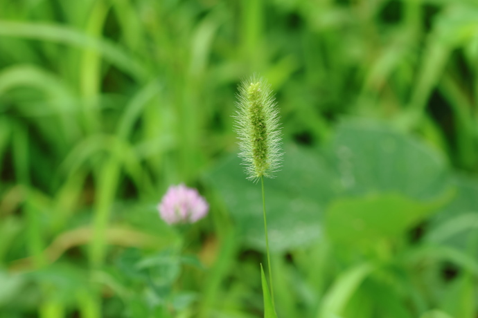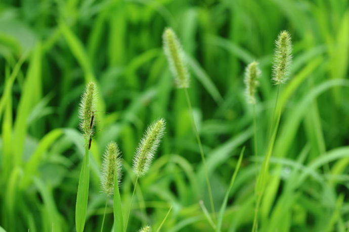 花穂がふわふわとした円柱状で犬の尾に似ていることから、「いぬころ草」が転じて名付けられました。猫がじゃれて遊ぶことから、「猫じゃらし」の別名もあります。