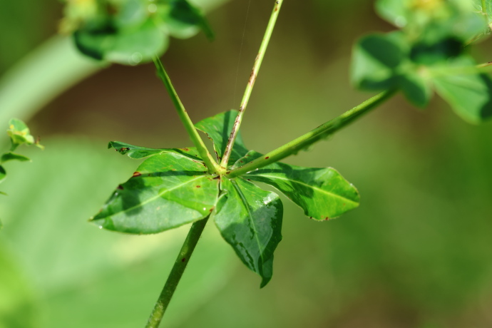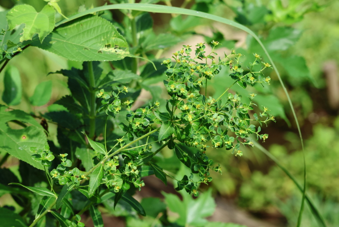 春に咲くナツトウダイと同じトウダイグサ科の仲間ですが、こちらは夏に開花します。草丈は70cmを超えることもあり、同科の中でも特に高く、名の由来となっています。