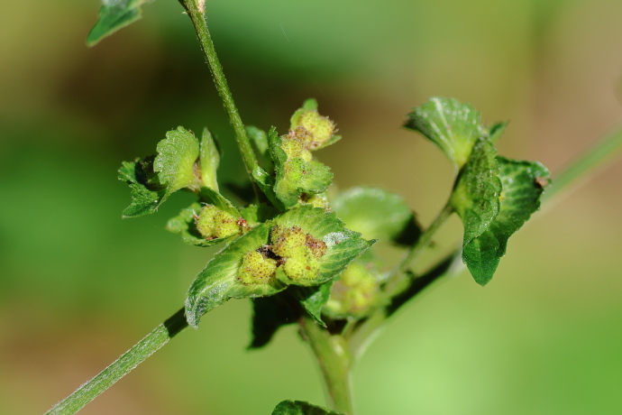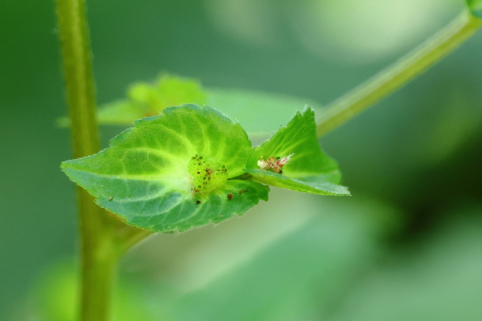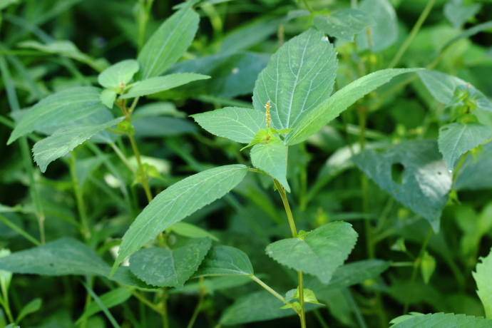葉がエノキの葉に似ていることから名付けられました。葉は互生し、茎頂や葉腋から花穂を伸ばします。花穂の上部に雄花が穂状につき、基部の編笠状の総苞に雌花がつきます。