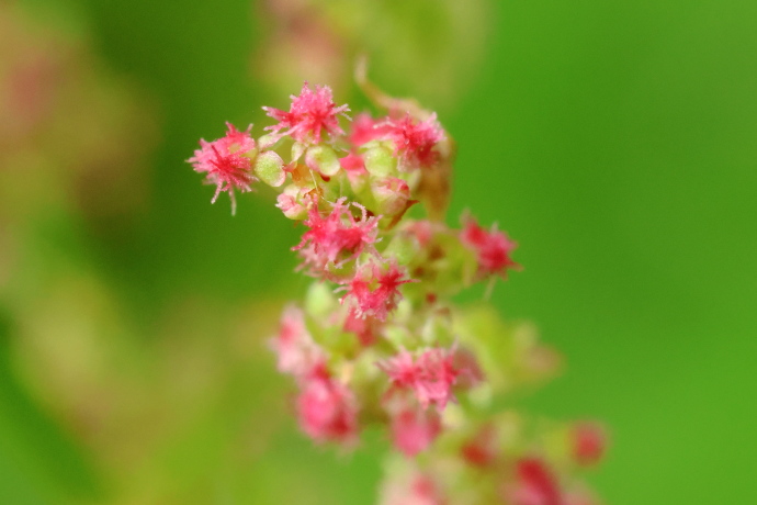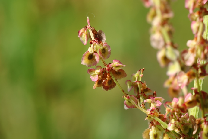 田畑の道端でよく見かける雑草です。雌雄異株で、茎の先に総状花序を円錐状に出します。花穂が分岐し、先端がほんのり赤みを帯びたこの株は、雌株のようです。