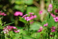 花弁は5枚で、紅紫色。花の中心部は白っぽく緑色の筋が入ります。雄しべは10本で葯は白色。葯に花粉は無く、種子はできません。雌しべは1本で、花柱は5本に分かれています。