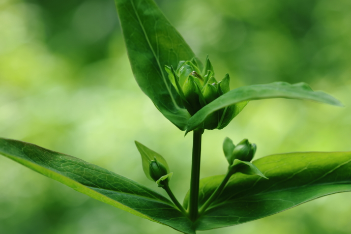 日当たりの良い南面の土手で、蕾を付けていました。大きいものは1mを超える大型の多年草。名は、花が勾玉またはスクリューのような「巴」型をしていることに由来します。