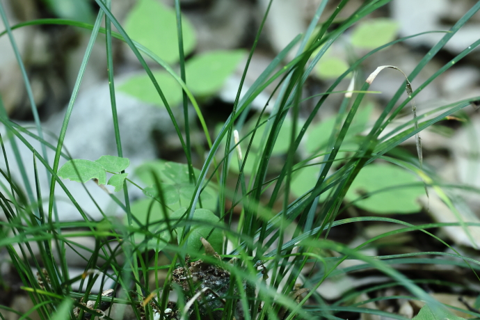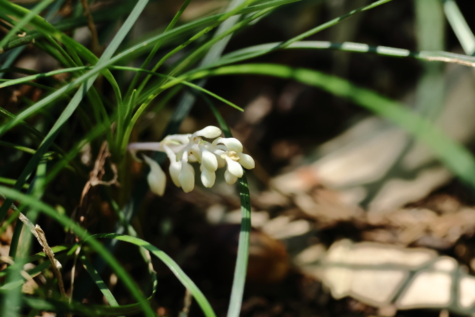 別名リュウノヒゲ。根生する細い葉を、ヘビや龍の髭に見立てたことが名の由来です。日陰に強く、森の道脇で見かけます。根はひげ根で、走出枝を伸ばして子株をつくります。