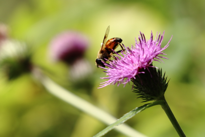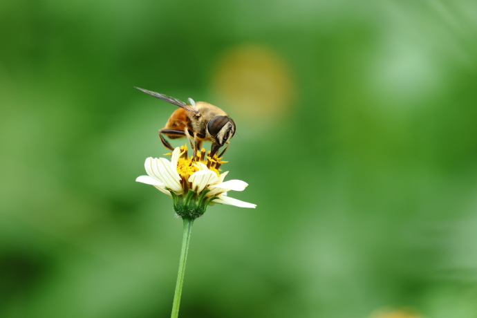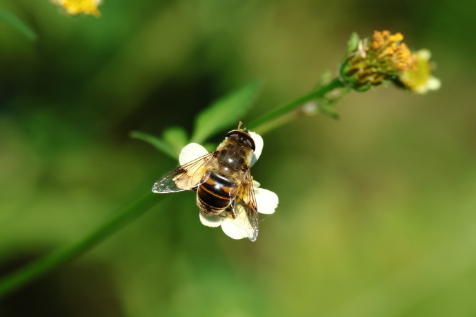 ミツバチによく似ていますが、アブです。