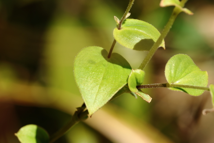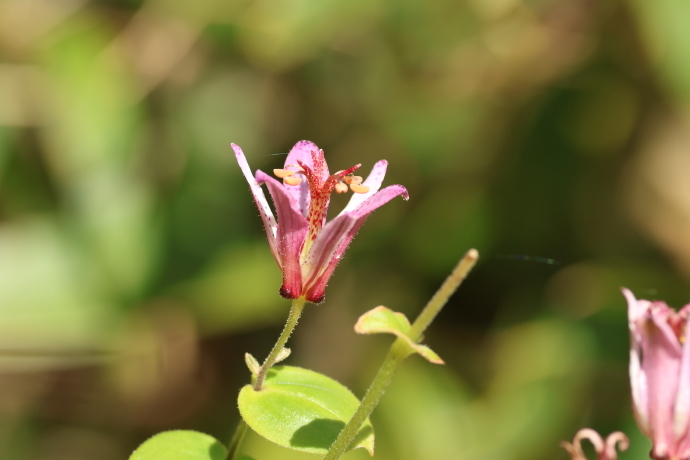 葉は互生し、長楕円状披針形で先端は尖り、基部は心形で茎を抱きます。ヤマホトトギスは若葉の頃に油点が出ますが、本種は成長しても不明瞭な油点状の模様が現れます。