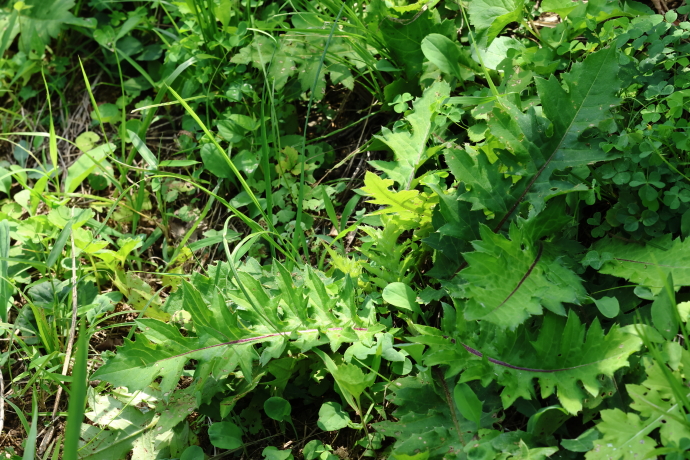 新しい根生葉が展開しています。ノアザミの季節が終わり、いよいよ本種の出番です。初夏から秋にかけてよく見かけます。葉は羽状に深裂し、縁には鋭い刺があります。