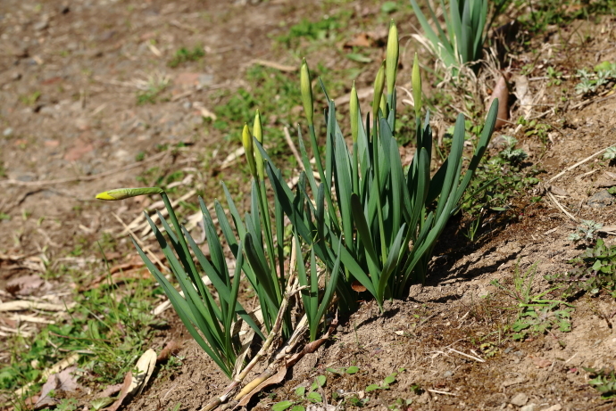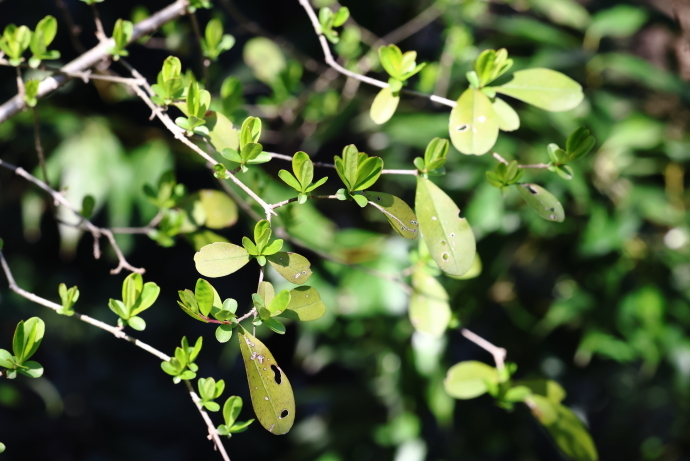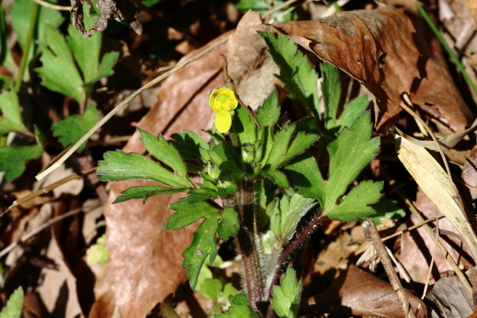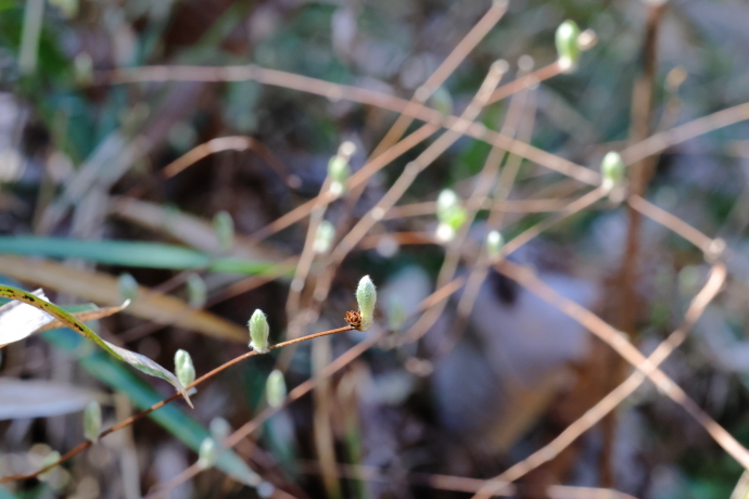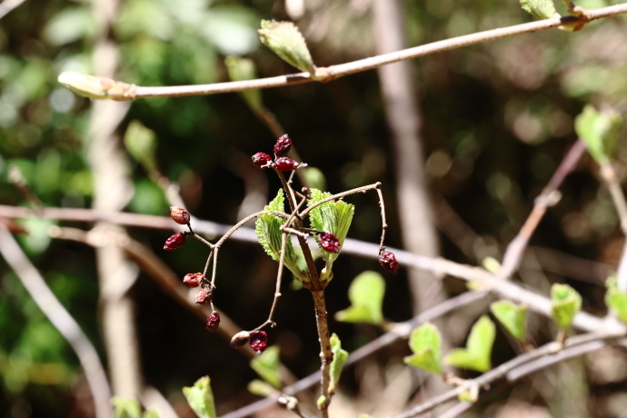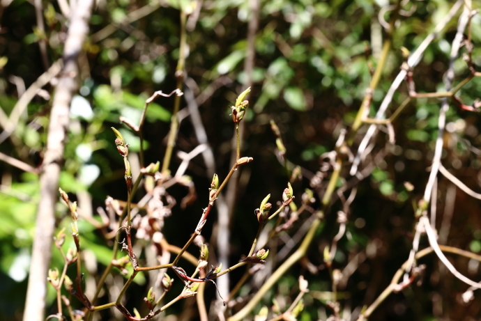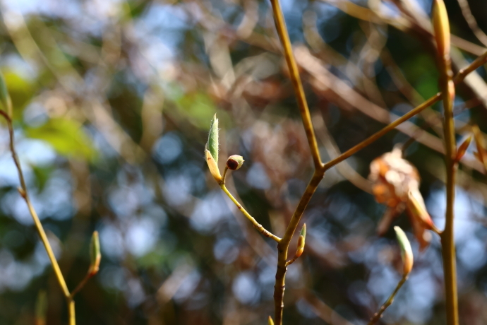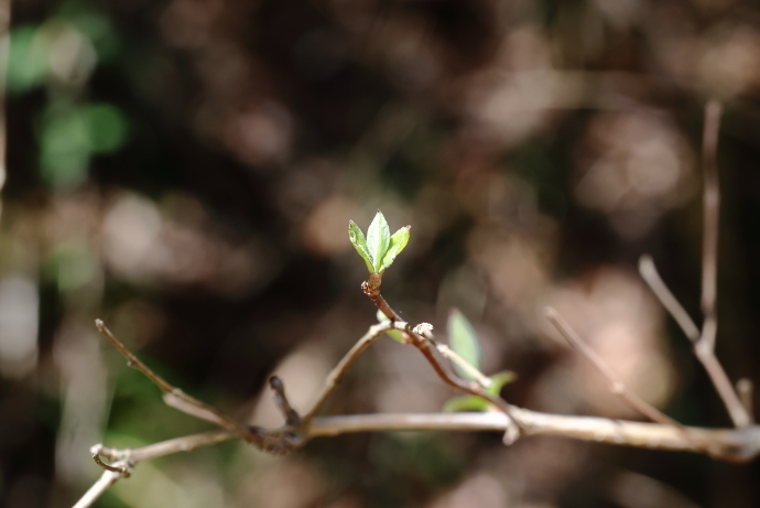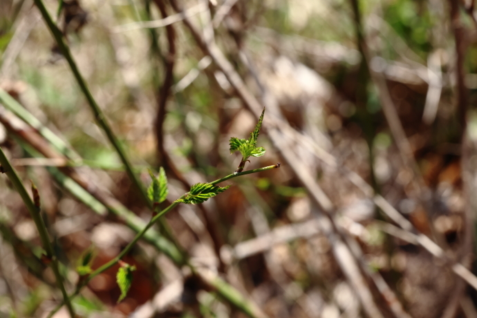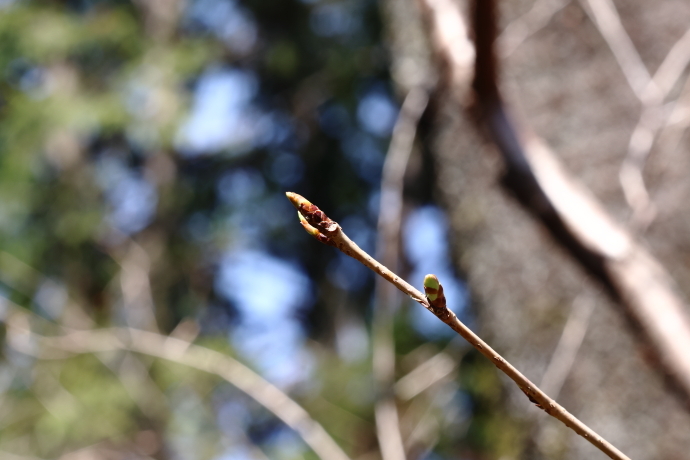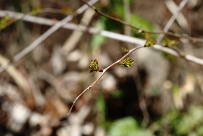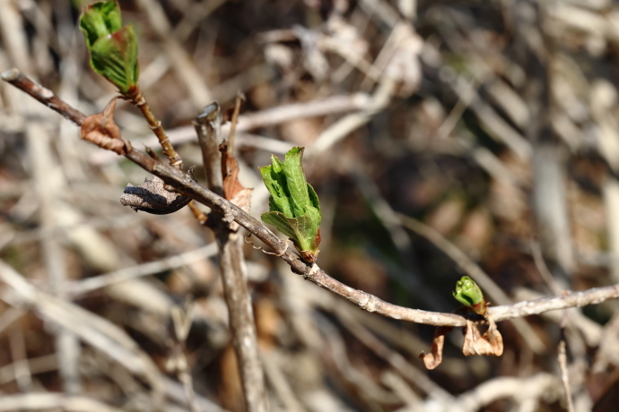 森の様子イロハモミジやウツギなど、多くの樹木で冬芽がいっせいに動き始めました。ニワトコは葉の間から早くも花序をのぞかせています。